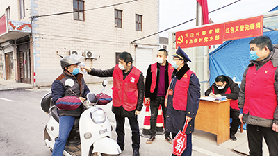 疫情發(fā)生以來,浙江嘉興市組織市縣兩級(jí)機(jī)關(guān)黨員干部下沉到隔離觀察點(diǎn)、高速出入口等卡點(diǎn)值守,并到結(jié)對(duì)聯(lián)系和所在村社報(bào)到,認(rèn)領(lǐng)志愿服務(wù)崗位。圖為桐鄉(xiāng)市機(jī)關(guān)干部在河山鎮(zhèn)五涇村卡口值守。