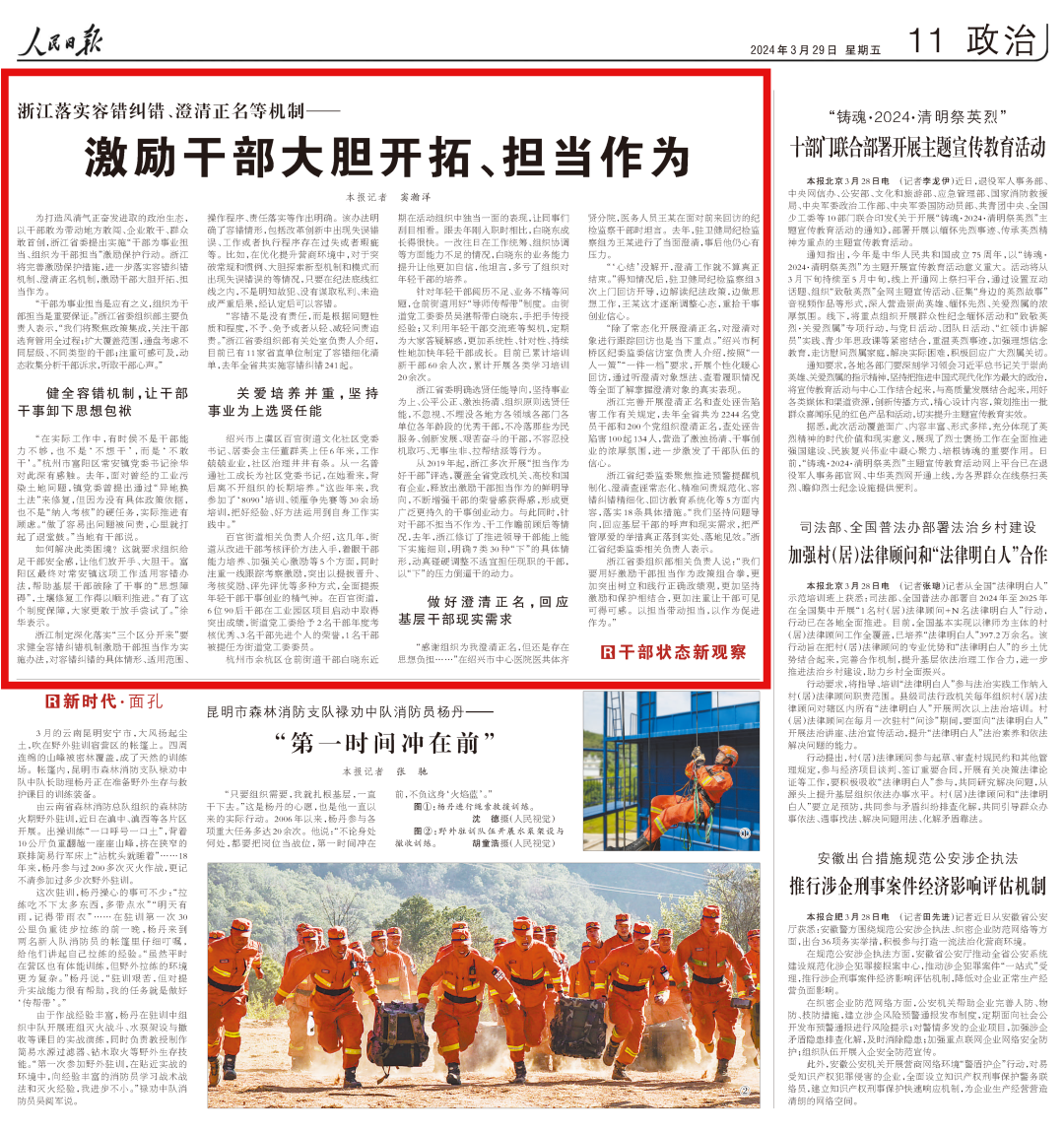編者按:《人民日?qǐng)?bào)》今日11版“干部狀態(tài)新觀察”欄目推出深度報(bào)道《激勵(lì)干部大膽開(kāi)拓、擔(dān)當(dāng)作為——浙江落實(shí)容錯(cuò)糾錯(cuò)、澄清正名等機(jī)制》,聚焦健全容錯(cuò)機(jī)制、關(guān)愛(ài)培養(yǎng)并重、做好澄清正名三方面講述浙江“干部為事業(yè)擔(dān)當(dāng)、組織為干部擔(dān)當(dāng)”激勵(lì)保護(hù)行動(dòng),具體內(nèi)容一起看看~